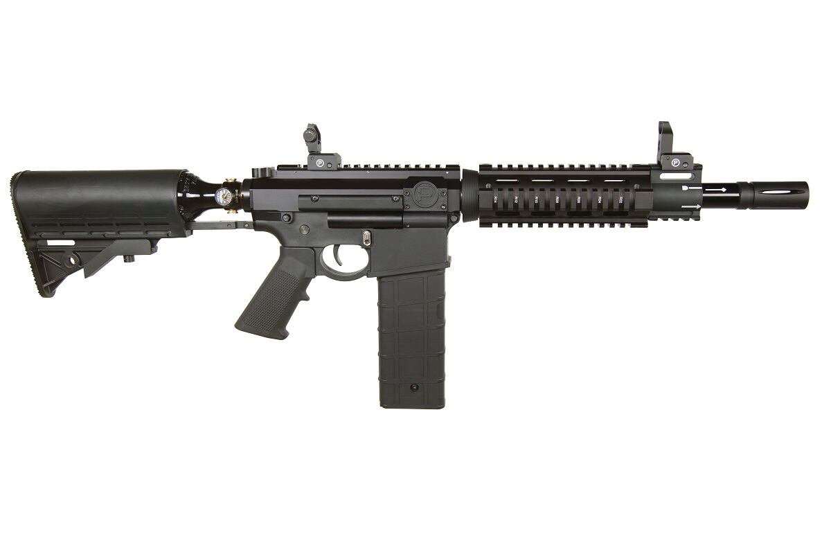 The launcher has a dual feed system, so a shooter can switch the selector knob between “hopper mode” and “magazine mode” to increase ammunition capacity.