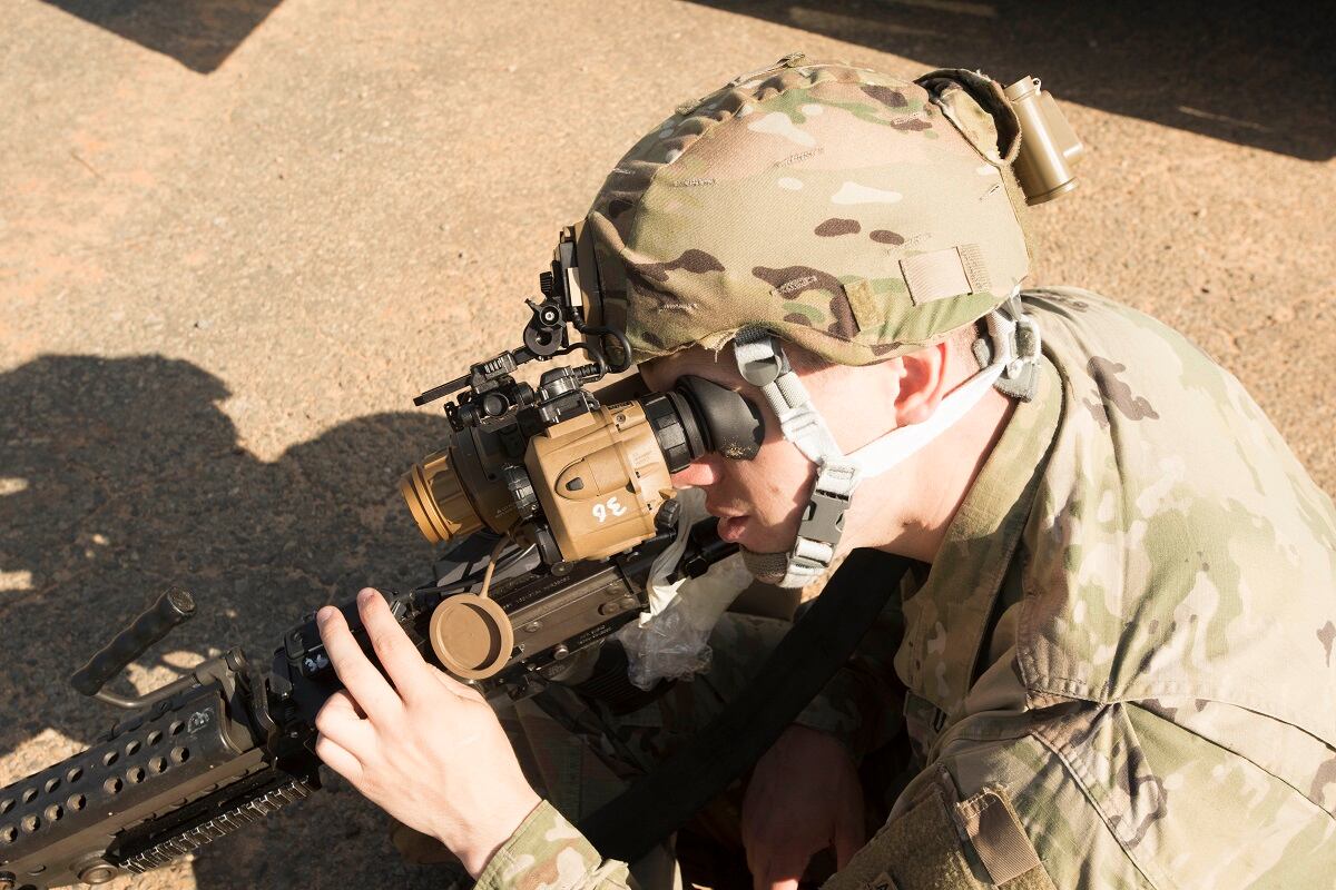 Researchers with the Army’s Program Executive Office-Soldier Maneuver Sensors have paired a next-generation night vision monocle, the ENVG-III, with the Family of Weapon Sights-Individual, or FWS-I, to allow a shooter to view the battlefield through light-enhancing night vision and thermal vision.